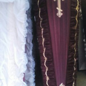 У нас замовити труну оббиту тканиною можна з доставкою в будь-яке вказане місце по Україні. Труни виглядають дуже красиво, тому спосіб їх виготовлення і оббивки ще тримається серед багатьох інших. Адже їх набувають саме для того, щоб поховати покійного з усіма почестями.